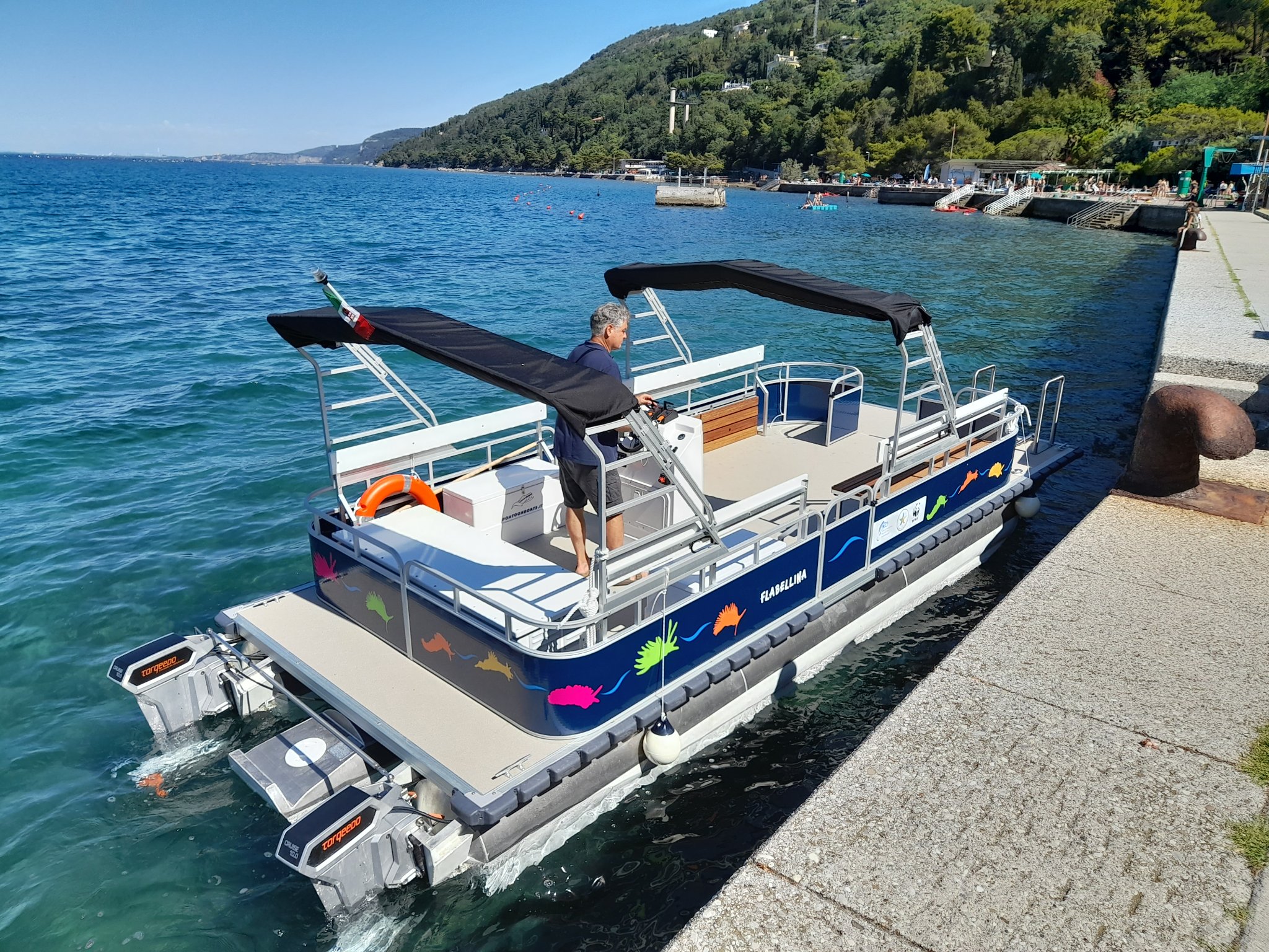 Con 20mq di pianale utilizzabile (idoneo anche per persone diversamente abili), è in grado di ospitare fino a 12 viaggiatori + 2 staff rendendola la perfetta imbarcazione da diporto.